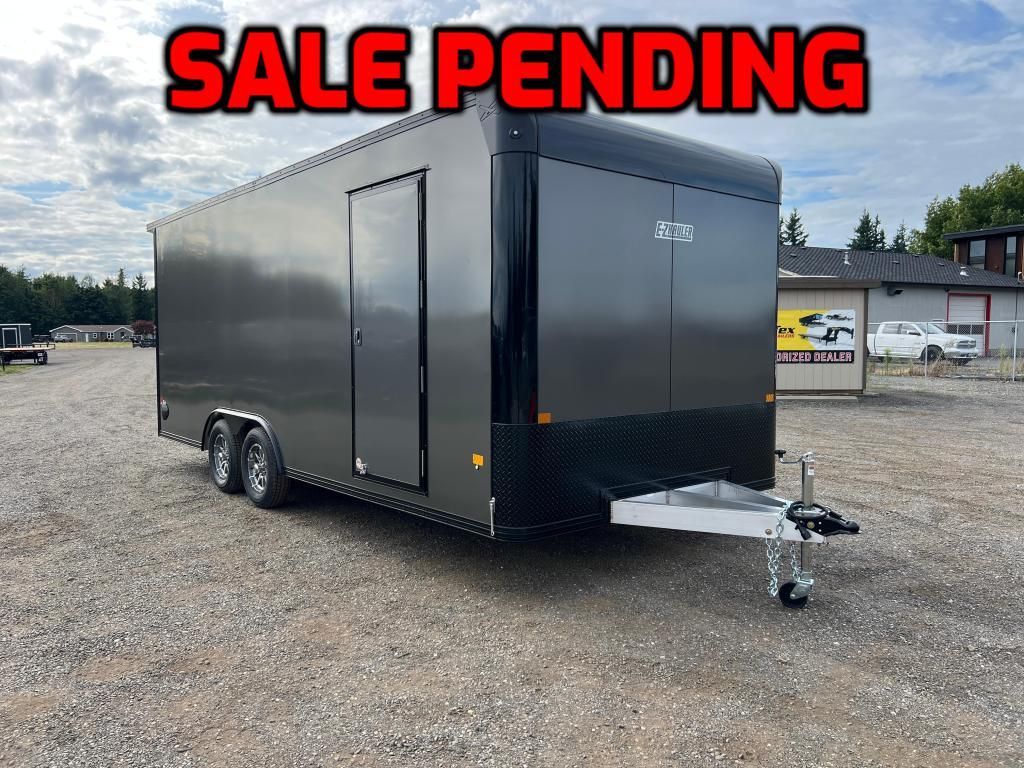 2026 EZ Hauler 7K Aluminum Car Hauler Enclosed Trailer w/ Upgraded Aluminum Wheels, 3" Extra Height, Exterior Powder Coat Pkg, Upgraded to PolyCOR Exterior Sheeting, White Vinyl Backed Luan Ceiling, Rear Door Canopy w/ Lights & Painted Epoxy Floor Covering 8.5' X 20'