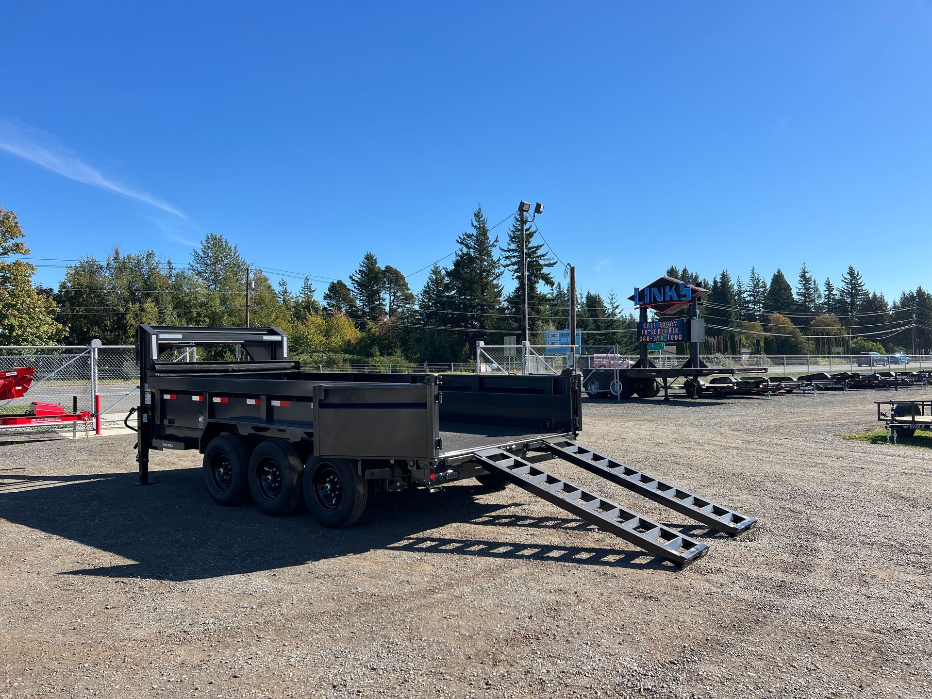 Tarp Kit, Diamond Plate Fenders, 16" Cross Members, 24" Dump Sides w/ 24" 2 Way Gate, Rear Slide in Double Channel Ramps, (2) 10K Spring Loaded Drop Leg Jacks, Cold Weather Wiring Harness, (4) D-Rings, Front Tool Box (Full Width Between Risers), Scissor Hoist 621 w/ Standard Pump, Solar Panel Charger, Rapid Battery Wall Charger, Wet Bolt Kit, Rear Support Stands, Max Step