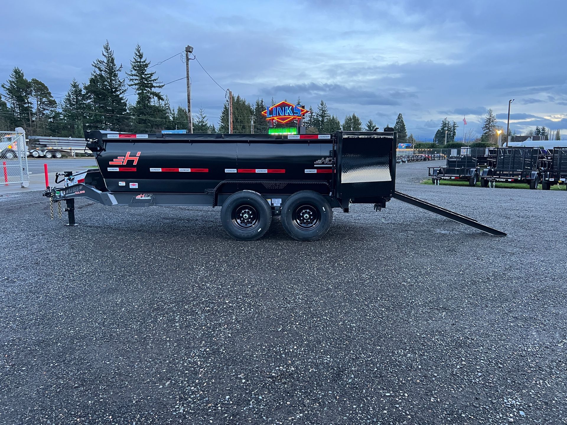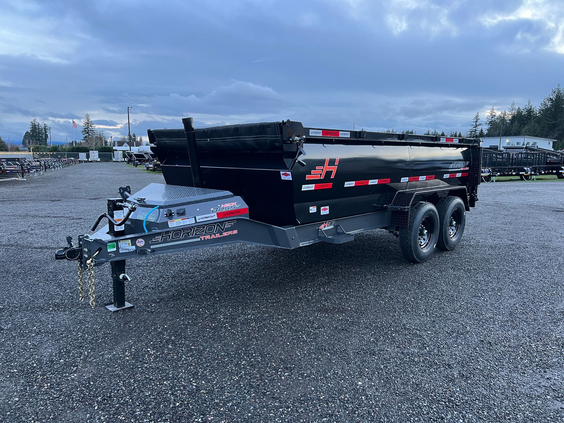 Tarp Kit, 3' High Sides, Telescopic Cylinder, 14 Ply Tires, Ramps, Lockable Tool Box, (4) D-Rings, 3 Way Door, Diamond Plate Steel Fenders, 6 Year Lippert Spring Axle Warranty, 3 Year Frame Warranty, 1 Year Parts Warranty